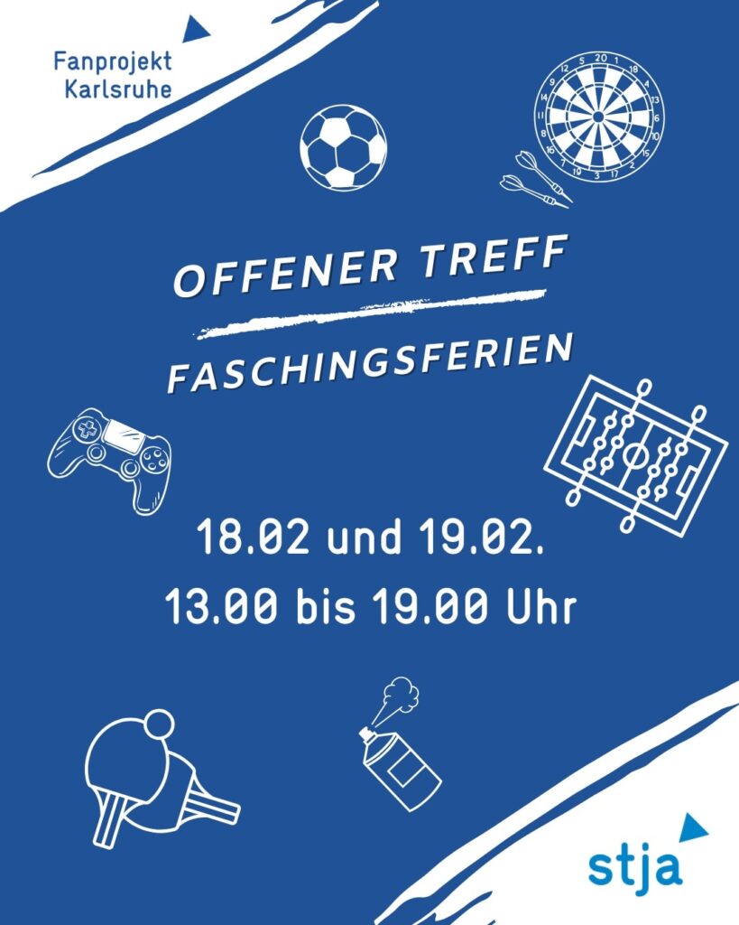 Am 18. und 19.02. habt ihr die Chance, die neuen Räumlichkeiten im Fanprojekt zu entdecken! Kommt vorbei, verbringt zwei entspannte Tage mit uns und lernt die coolen Möglichkeiten kennen, die unser Treffpunkt bietet. Ob kickern, zocken oder einfach mit anderen Jugendlichen quatschen – hier ist für jeden etwas dabei.